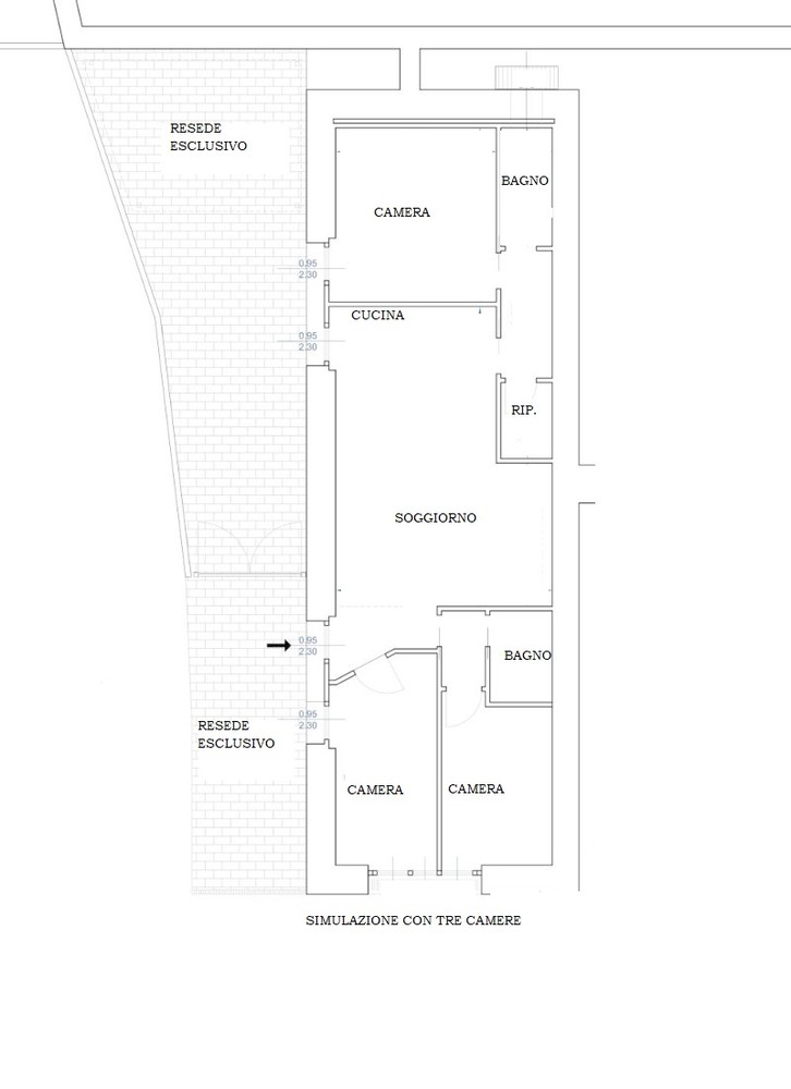 Immediatamente fuori Porta Pispini, Via Peruzzi, vendesi appartamento di 100 mq con ingresso singolo tramite resede pavimentato con veranda coperta. Diviso tra soggiorno con angolo cottura, due camere matrimoniali (realizzabile la terza camera come da pianta dimostrativa), due bagni, ripostiglio. Nel resede è possibile posteggiare due auto. Completamente ristrutturato con ogni cura ed accorgimenti di ultima generazione: cappotto termico, pompe di calore caldo/freddo, sistema vmc (ventilazione meccanica controllata) per ricambio d’aria. Utenze autonome, acqua sottocontatore; condominio spese euro 20 al mese.
