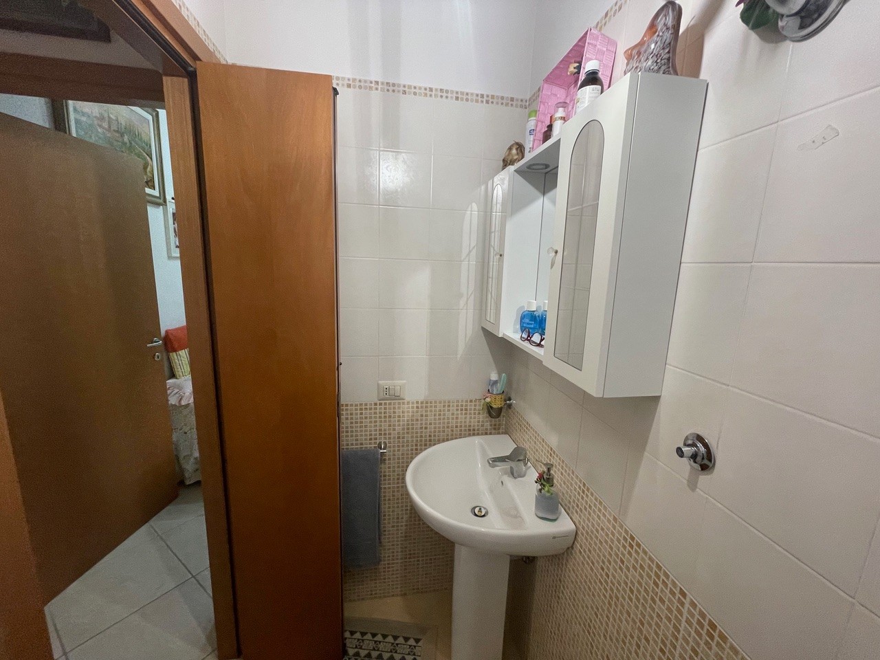 In complesso ben tenuto ed in ottima posizione, appartamento di circa 90 mq. situato al piano primo ed ultimo. L’appartamento si presenta in ottime condizioni ed e’ composto da ingresso con ampio soggiorno con angolo cottura, due camere di cui una matrimoniale, due bagni, ampio ripostiglio e lavanderia. Completa la proprieta’ un garage di circa 20 mq.