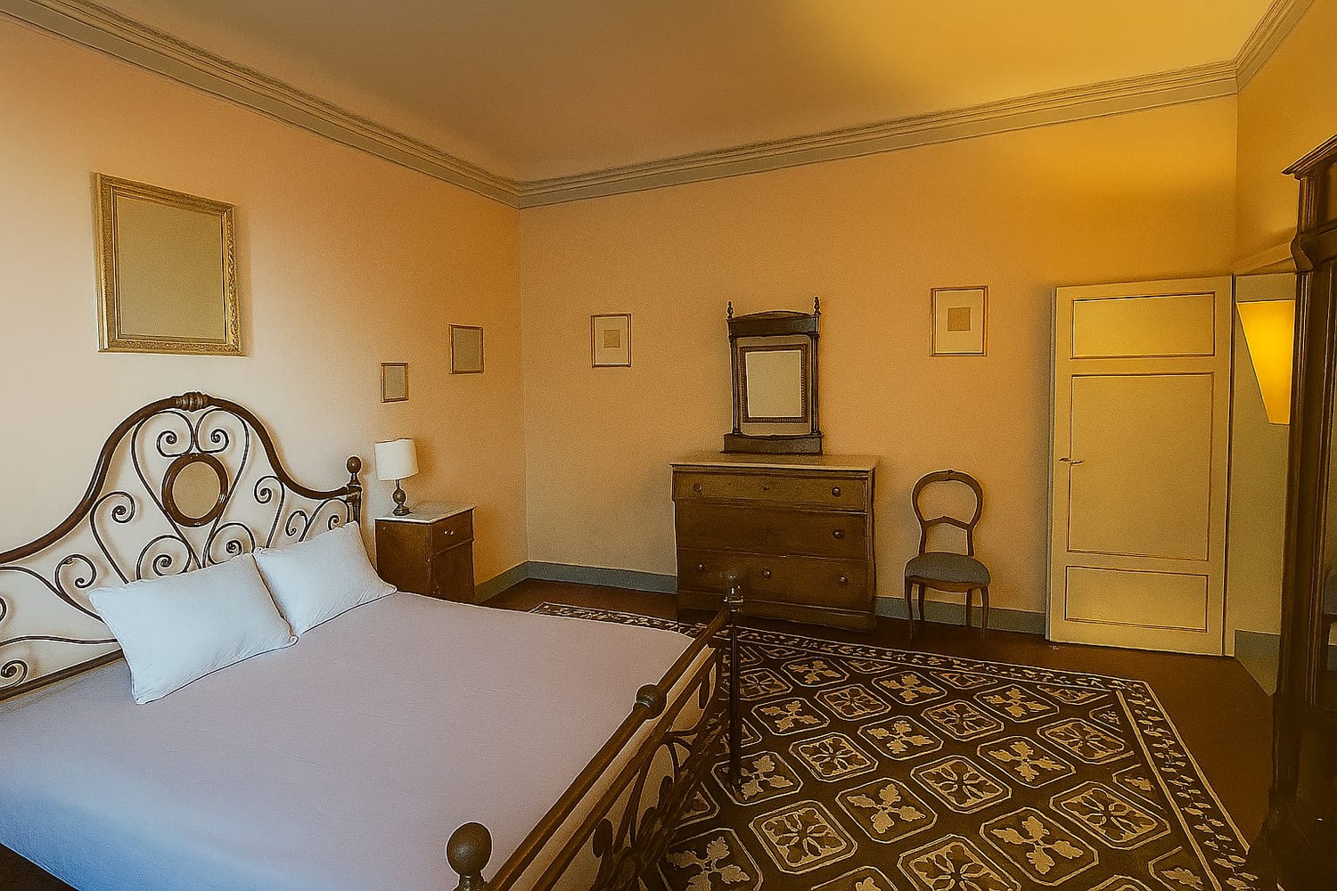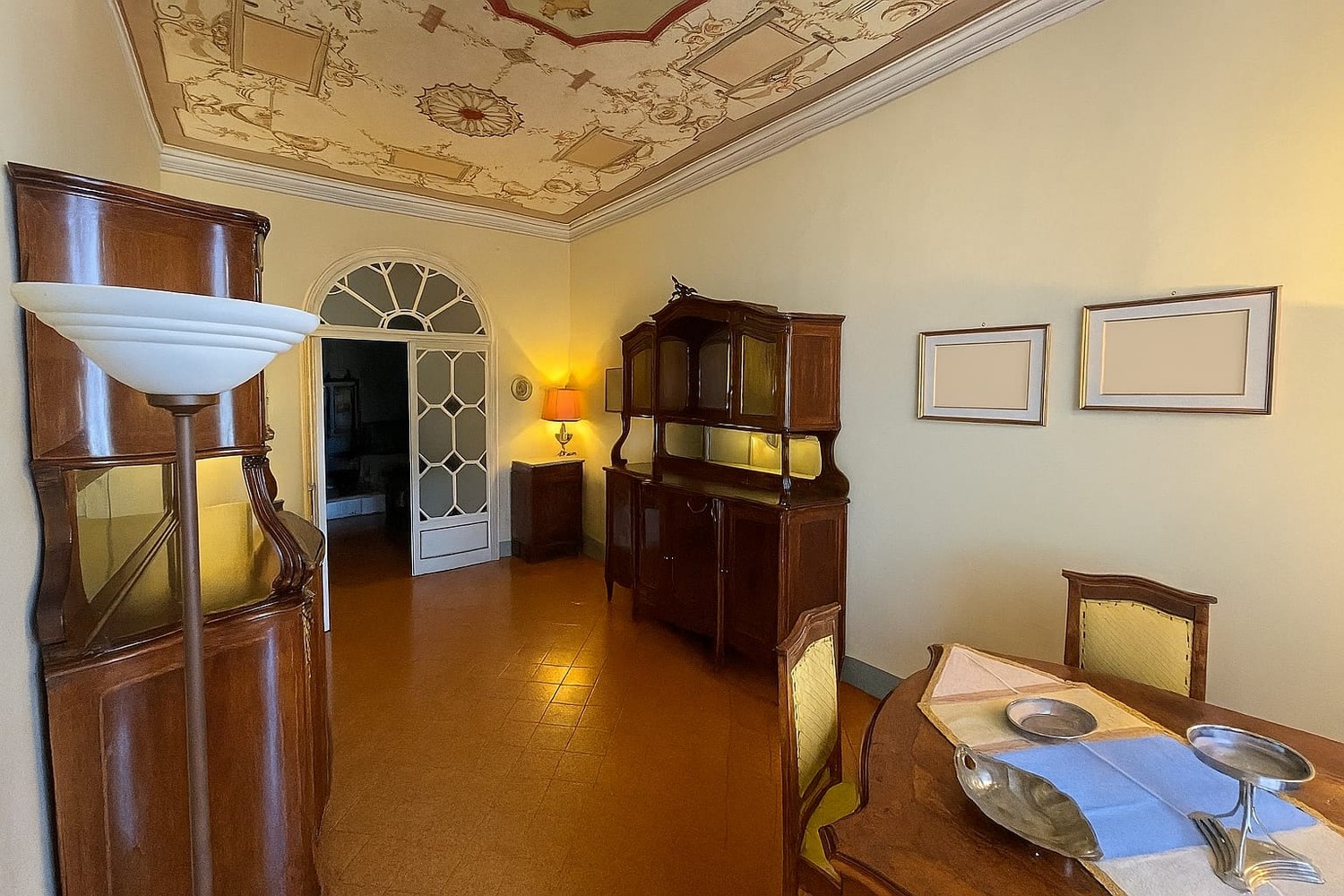 In palazzo notificato del centro storico appartamento in buone condizioni di circa 220 mq. con eleganti affreschi, travature importanti, elementi decorativi e di finitura eccellenti. Ha ingresso al piano terreno ma gli affascinanti affacci sono al primo e secondo piano. Attualmente e’ diviso in due unità immobiliari facenti parte della stessa proprietà divise da un ingresso importante. La prima unità e’ composta da ingresso, un primo salottino, zona pranzo, bel soggiorno con caminetto, cucina abitabile, bagno, due camere grandi di cui una con terrazzo, ripostigli vari. La seconda da ingresso soggiorno ampio, cucinotto separato, camera matrimoniale e bagno.