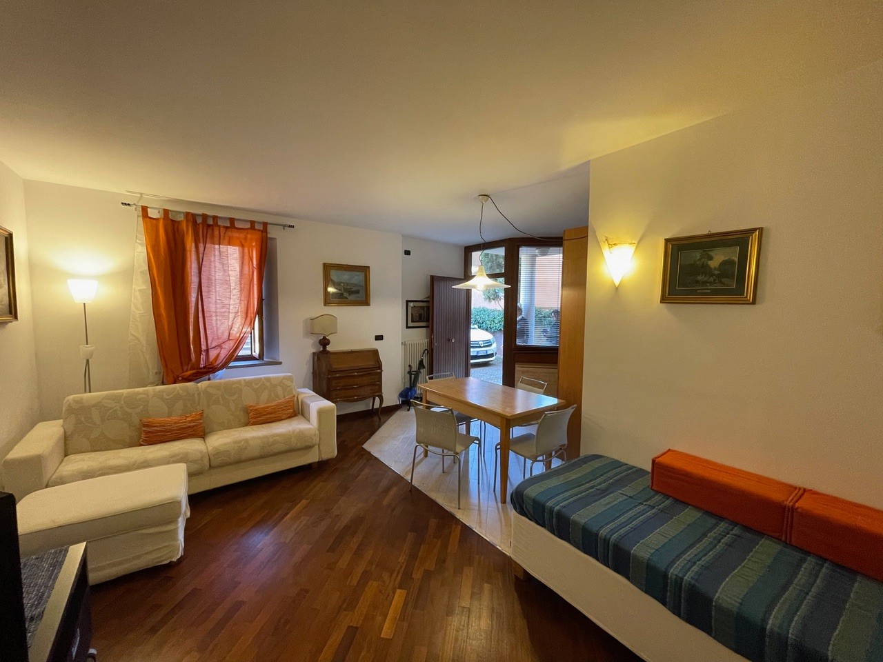 In piccola palazzina appartamento al piano terreno di circa 53 mq. in ottime condizioni complessive. E’ composto da loggia d’ingresso, grande open space, bagno e ampio ripostiglio. Completa la proprietà un garage di mq.17 che volendo potrebbe essere scorporato dalla vendita.