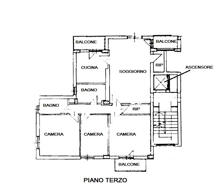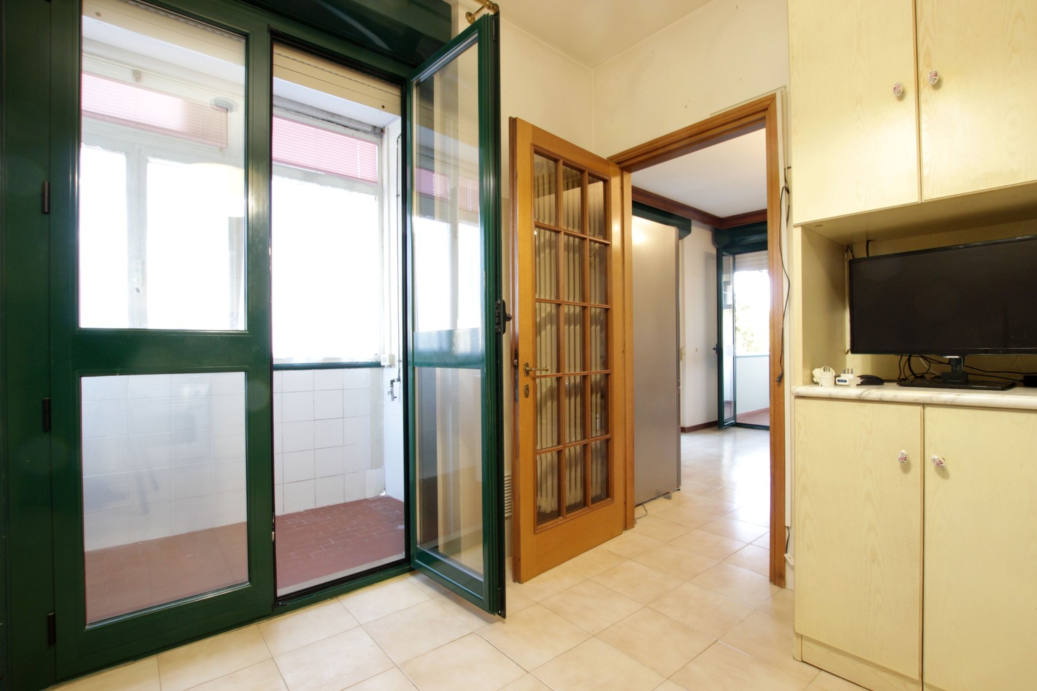 Collocato al terzo piano e servito da ascensore, appartamento di 120 mq divisi tra soggiorno con ripostiglio e balcone, cucina abitabile con balcone e zona notte con corridoio e ripostiglio, una camera singola, due camere matrimoniali, due bagni finestrati. Completano la proprietà un ampia cantina di 12 mq ed un posto auto coperto all’interno del garage posto al piano seminterrato.
